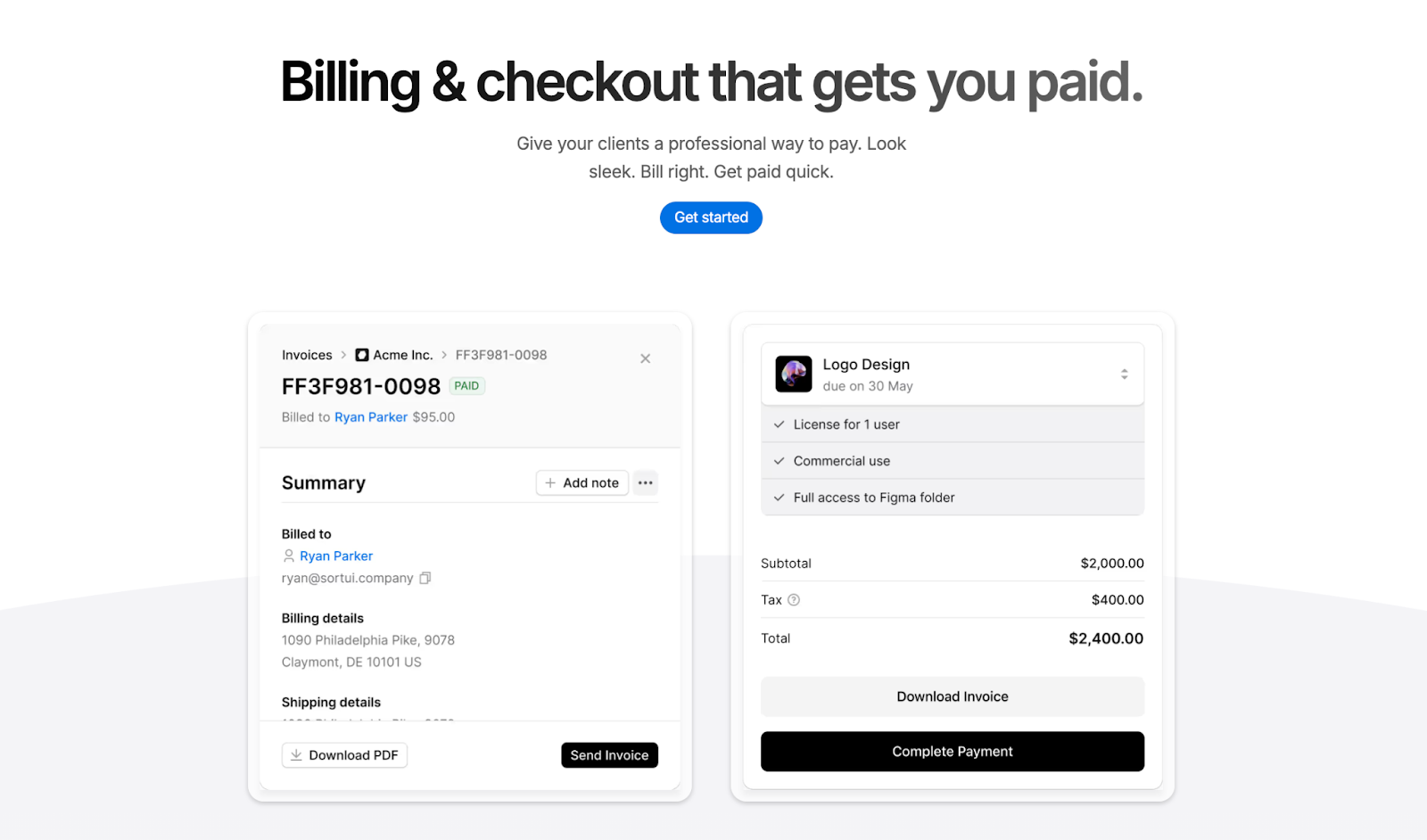 Dribbble creates a simple invoice for each project (project name + total amount). However, it cannot calculate regional taxes, add special payment instructions, or send automatic payment reminders.