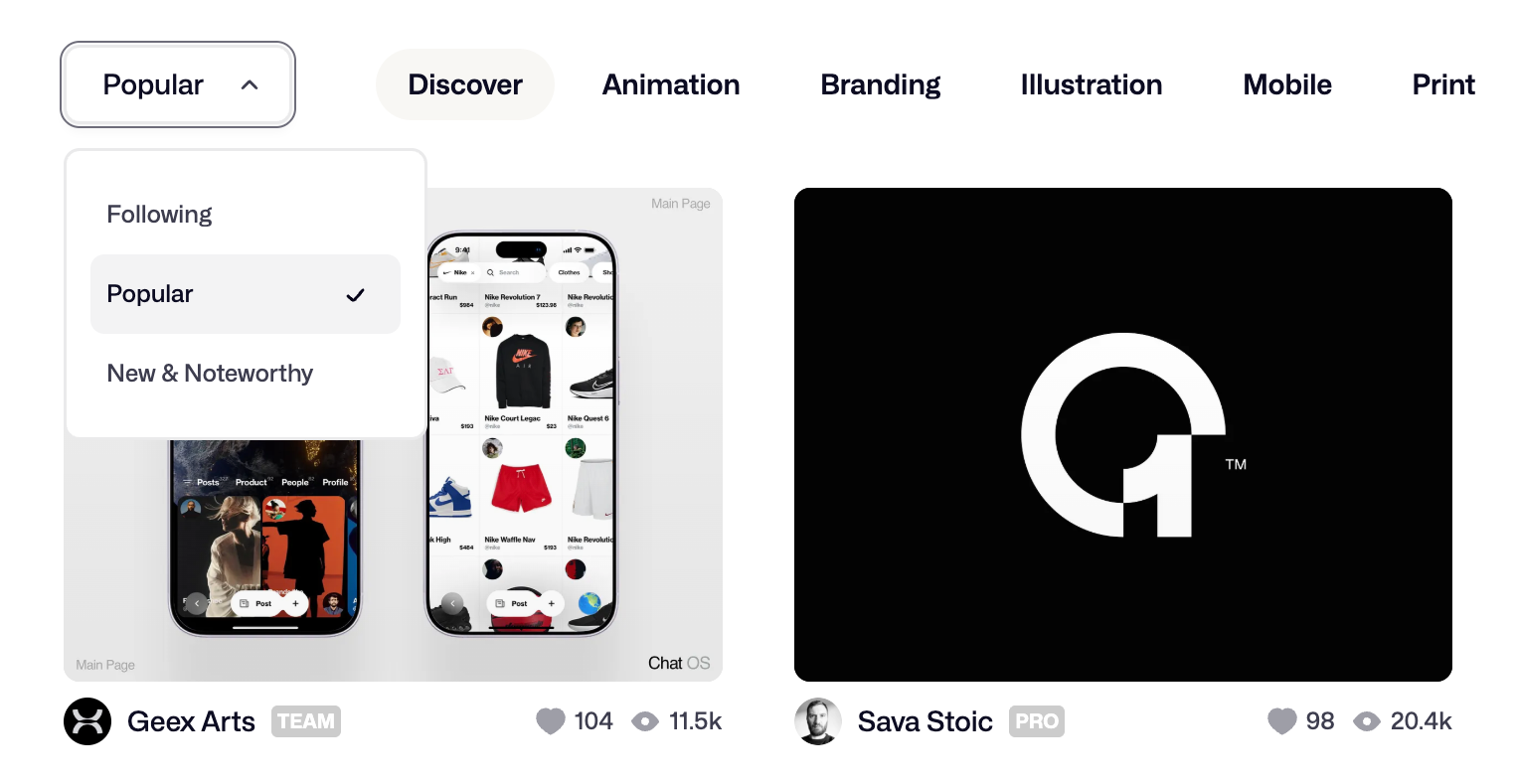 3. Dribbble’s “Discover” can spark creative inspiration