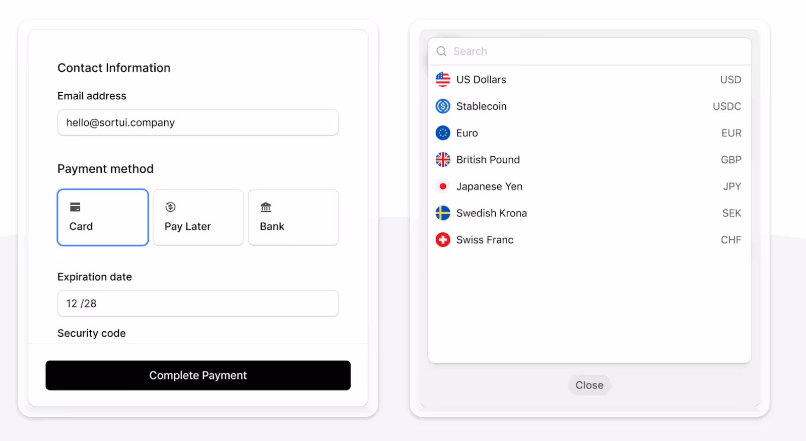 MoR platforms have more flexibility in this regard than Payment Processors. Your client can pay by bank transfer, credit card, or digital wallet. At Ruul, we've even added cryptocurrencies to this list.