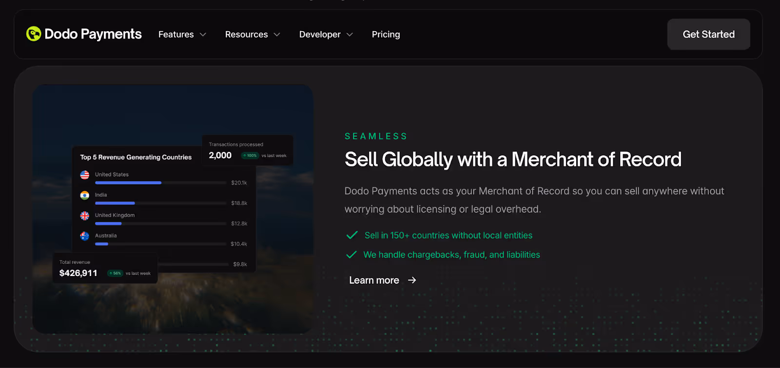 Dodo Payments is a full-service MoR model for digital product sellers and developers. It offers 25 local and global payment options, including Apple Pay, and comes with GST, VAT, and sales tax automation.
