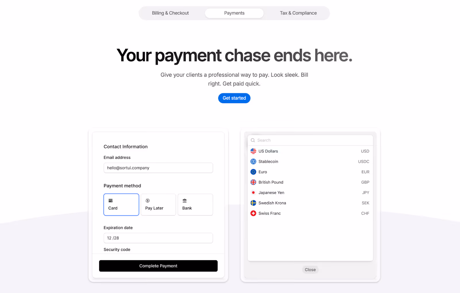 Manage refunds, export receipts, and track multi-currency clients from one dashboard.