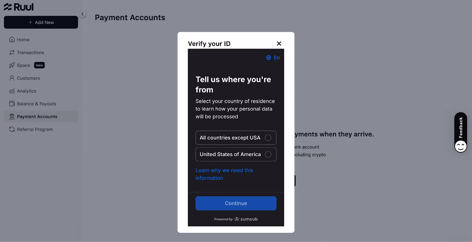 After setting up your account, there’s one required step before you can start selling: identity verification. Once you complete this, Ruul becomes your authorized MoR.