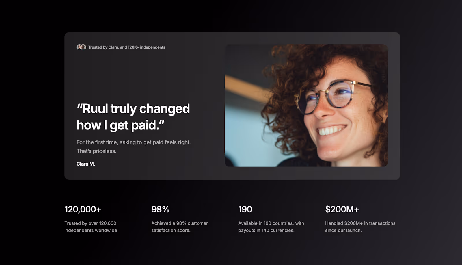 At Ruul, we’ve been running a flat 5% fee for a while. This low, competitive rate is already a favorite and helps freelancers keep most of their income. Normally, you’d have to pay much more for these kinds of services.